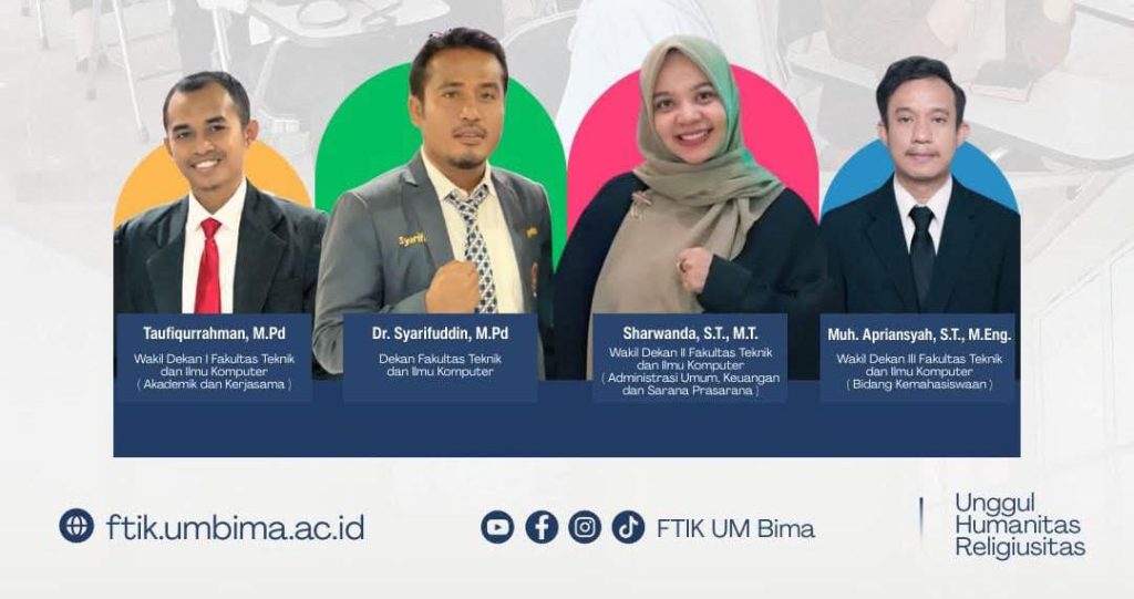 Fakultas Teknik dan Ilmu Komputer UM Bima menawarkan program-program studi yang relevan dengan perkembangan teknologi dan kebutuhan industri masa kini. Kami menyadari bahwa di era digital ini, inovasi dan penguasaan teknologi menjadi kunci dalam menjawab tantangan global. Oleh karena itu, kami senantiasa mengedepankan pengajaran yang berbasis pada riset, serta mengintegrasikan nilai-nilai Islami dalam setiap aspek pembelajaran.